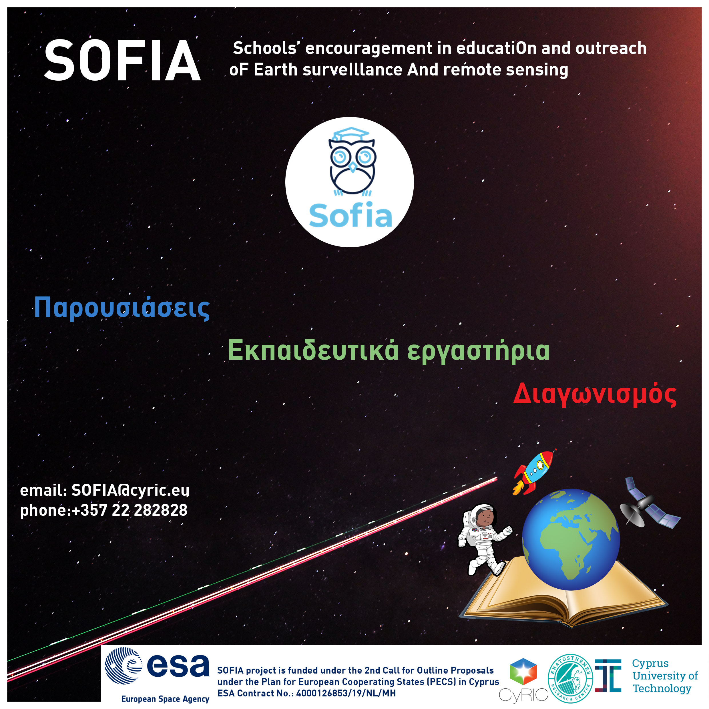 Το έργο SOFIA έχει σκοπό την ενημέρωση και εκπαίδευση των μαθητών και των καθηγητών σχετικά με τον τομέα της παρατήρησης Γης και τις τεχνικές τηλεπισκόπησης. Ομάδα υλοποιησης CyRIC Ltd και ERATOSTHENES Centre of Excellence